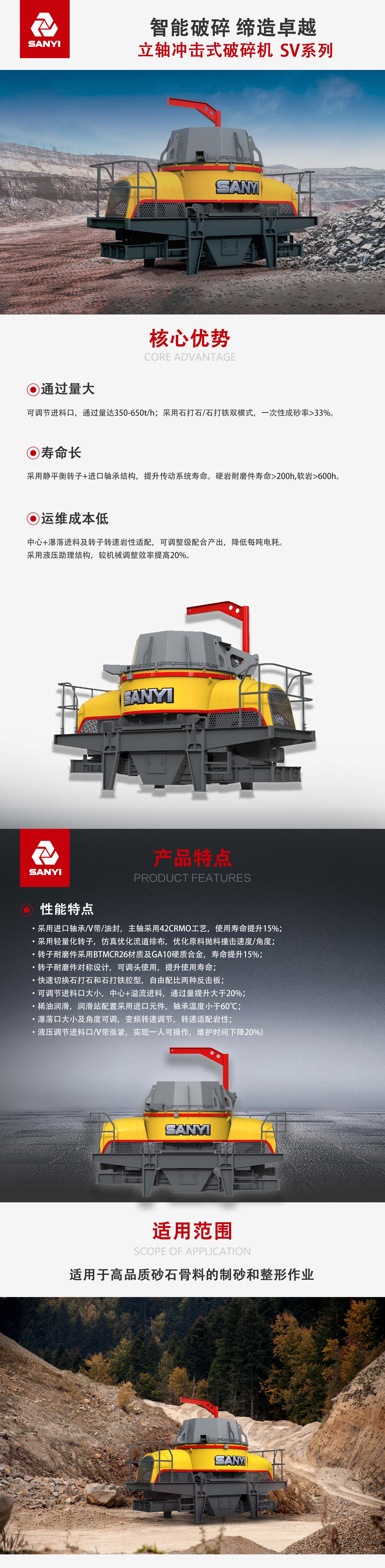 通(tong)過(guo)量大(da):可(kě)调節(jie)進(jin)料口,SV8210通(tong)過(guo)量达350-650t/h,領(ling)先(xian)行业8%。采用(yong)石打石/石打铁双模式(shi),一(yi)次性成(cheng)砂(sha)率>33%,提升3箇(ge)百(bai)分(fēn)点。