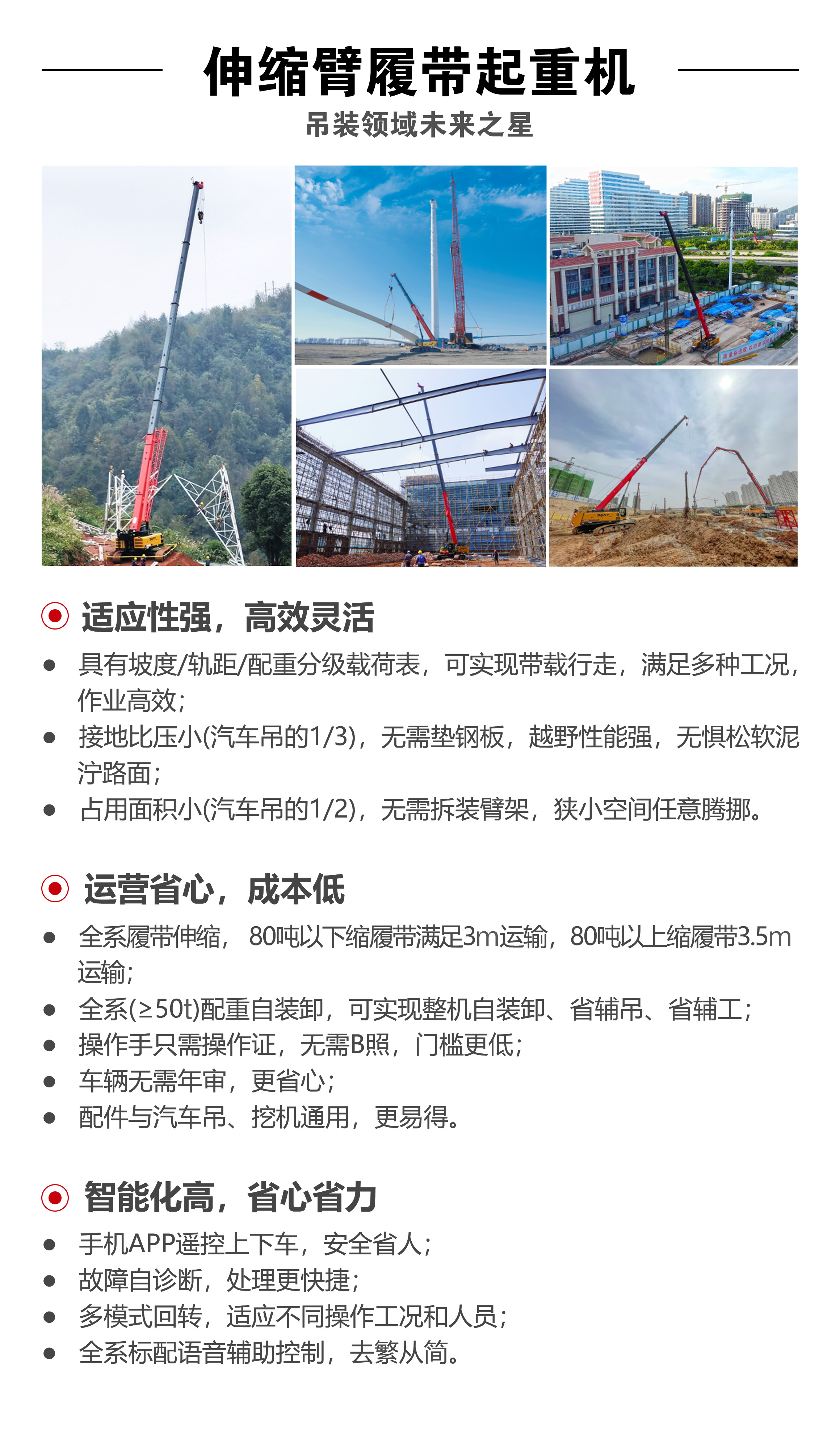 低运營(ying):15min完成(cheng)履带伸缩,3m运輸(shu)不超限(xian),一(yi)車(che)转場(chang)更便捷。
